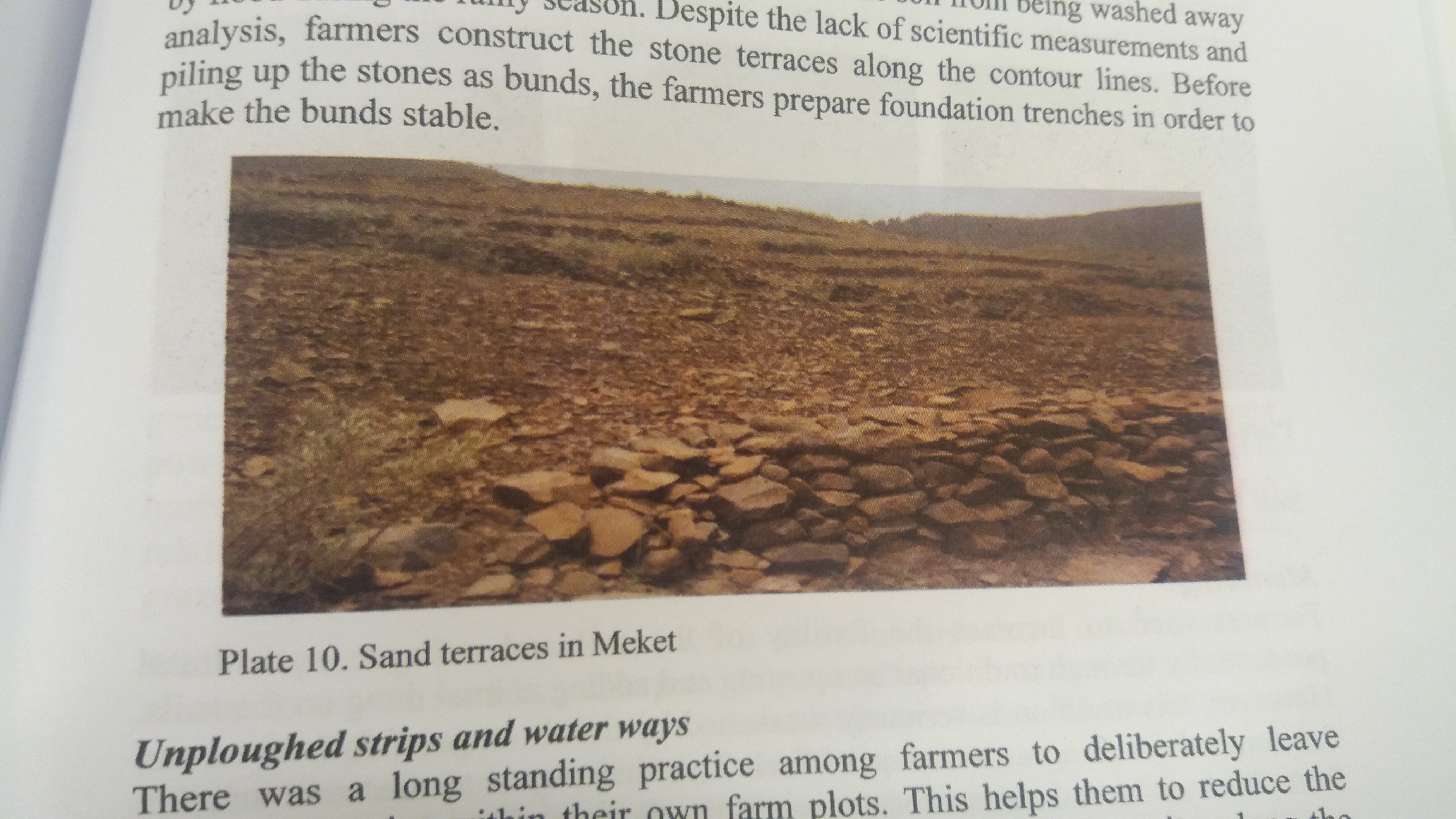 Despite the lack of scientific measurements (Adem:2011), farmers still use terraces for structural soil conversation to protect the soil from being washed away.